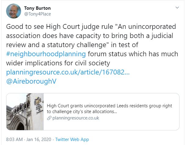 It is just unfortunate that such legal claims cost a great deal of money for good legal representation, and there is no available legal aid. Aireborough, has no Parish Council and so there is no available public money for such situations – it has to be crowdfunded. But in essence that also means it has to have local support – which is also a form of local democracy.