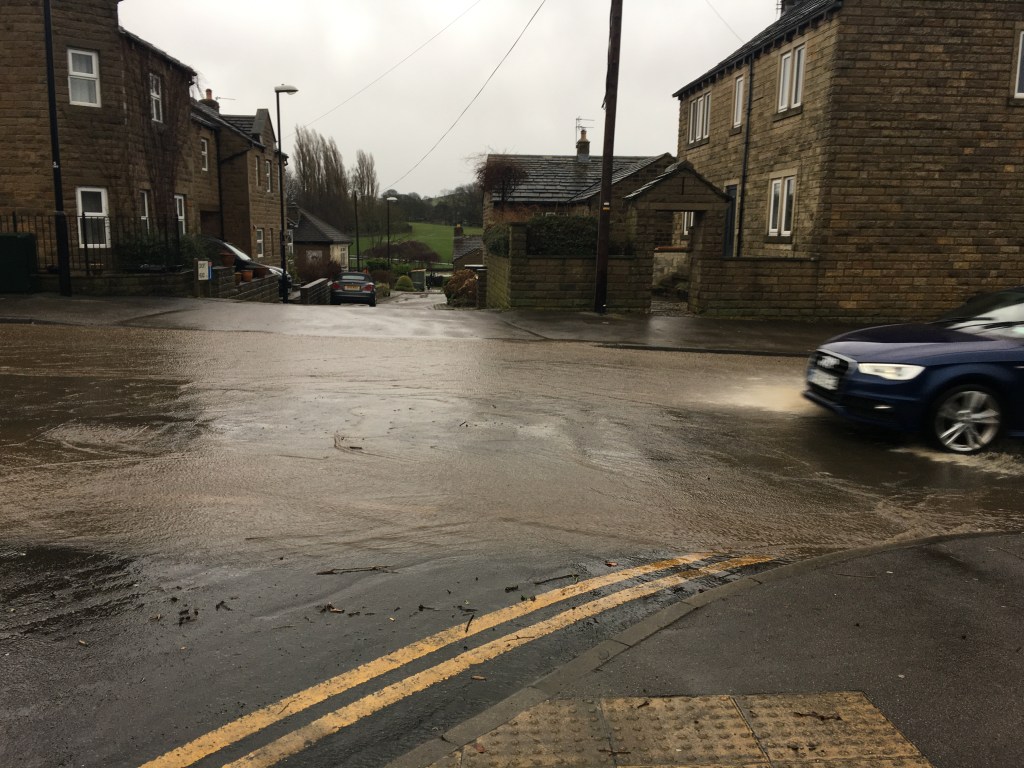 From there the water makes its way down Guiseley Beck Ghyll to endanger Esholt, and flow into the Aire causing flood warnings