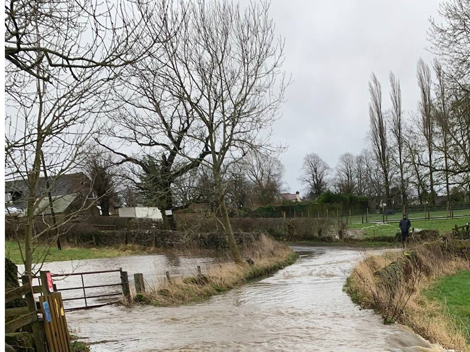 The geology and dip slope of the Chevin collect and act as a natural soak area for rain water. The traditional land use of the whole area was of meadow and pasture which helped manage and control drainage. On Sunday 9 February we saw this landscape demonstrate its drainage function yet again, in a repeat of the floods at Christmas 2015.