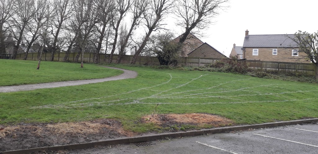 You may have noticed some white chalked areas in Nunroyd and Springfield Park recently. These are being marked out for woodland planting by Leeds City Council. The purpose of this is threefold.