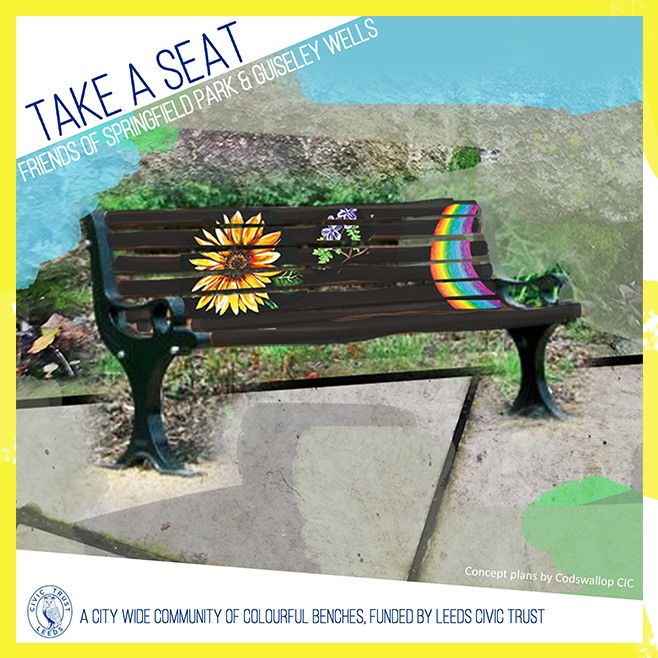 The Friends of Springfield Park & Guiseley Wells have applied for and are fortunate to have been awarded one of a unique set of 15 community benches provided by the Leeds Civic Trust ‘Take A Seat’ Project. The benches will commemorate how the citizens of Leeds came together during the Covid 19 Pandemic of Spring 2020. A little like the Trust’s Blue Plaques scheme that celebrates notable historic events. There is more information on the aims of the scheme from the Civic Trust here.