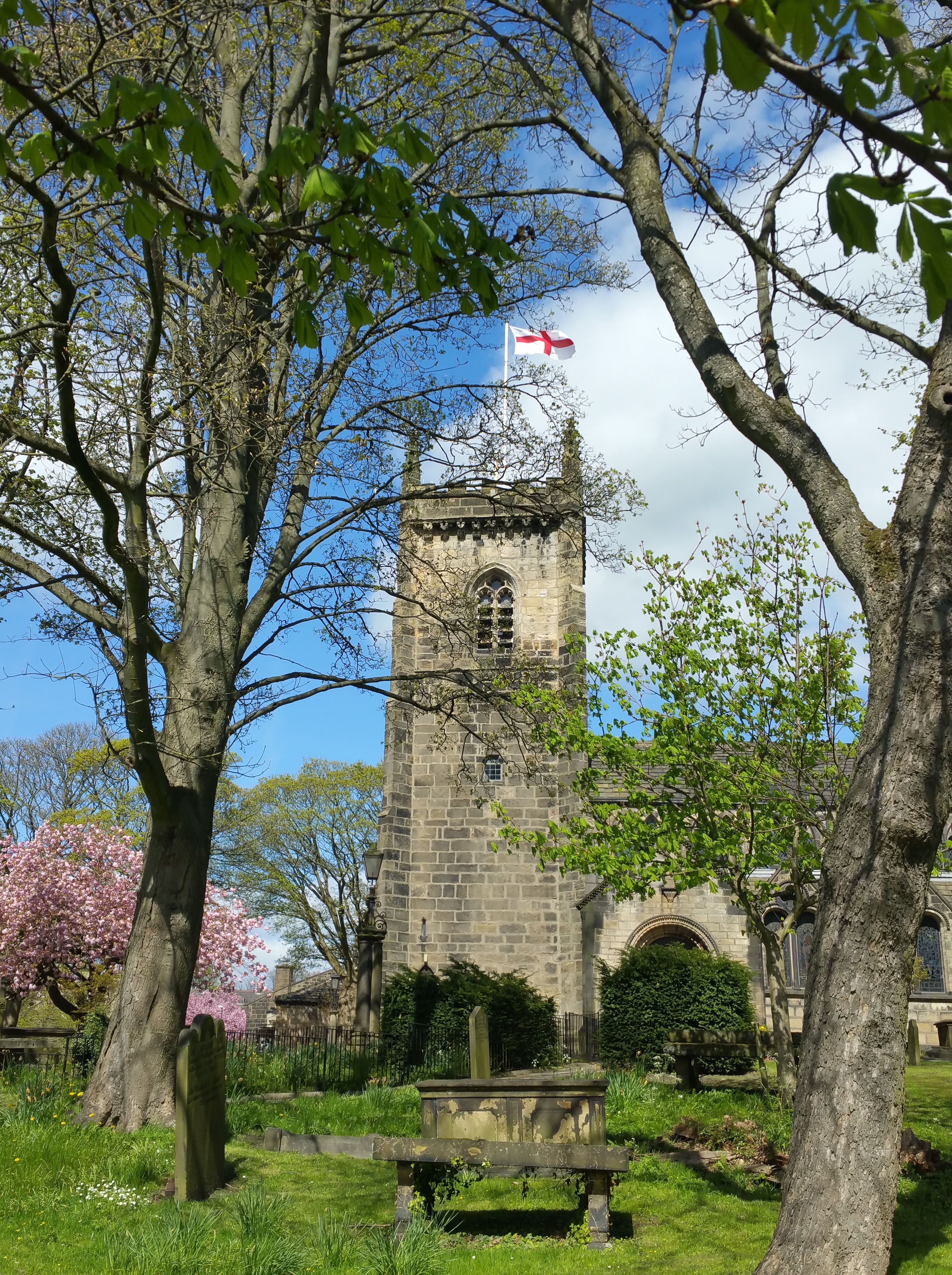 Reaching back further the church has been the setting for conflict between catholic and protestant following King Henry’s great cultural change. The tower with its battlements was built for the purpose of defence and protection from marauding Scots who rampaged in the area in the early 14th century. The picture of the nuns wending their way uphill through the woods by Guiseley Beck from Esholt Nunnery to the Chantry is a serene one. And, of course, the 9th century Anglo Saxon crosses found in the church walls are part of the evidence of the early establishment of Christianity in an area that was once part of the Forest of Elmet whose British Christian clergy fled the hostile sword wielded by the Anglo Saxon warriors from Northumbria in the 7th century.