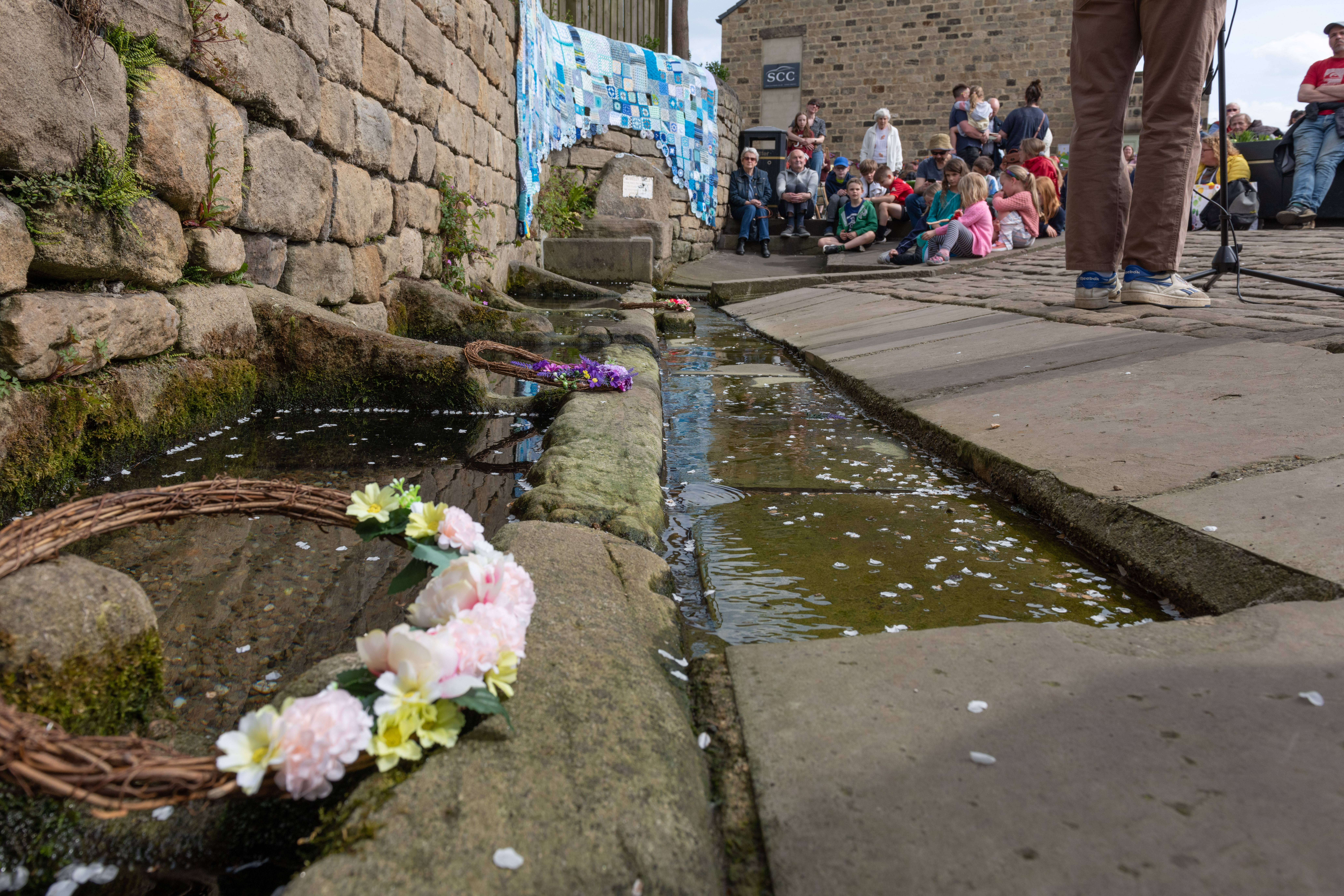 The Well Dressing event was serenaded by a range of local musicians and choirs, and blessed by Helen James who drew on May Day folk traditions. There was poetry written by local school children about what the Wells means to them today – and a brief outline by Jennifer Kirkby on the Wells’ history and what it meant to people in the past. (A copy of the Wells history and poems is outlined is here in pdf form.)