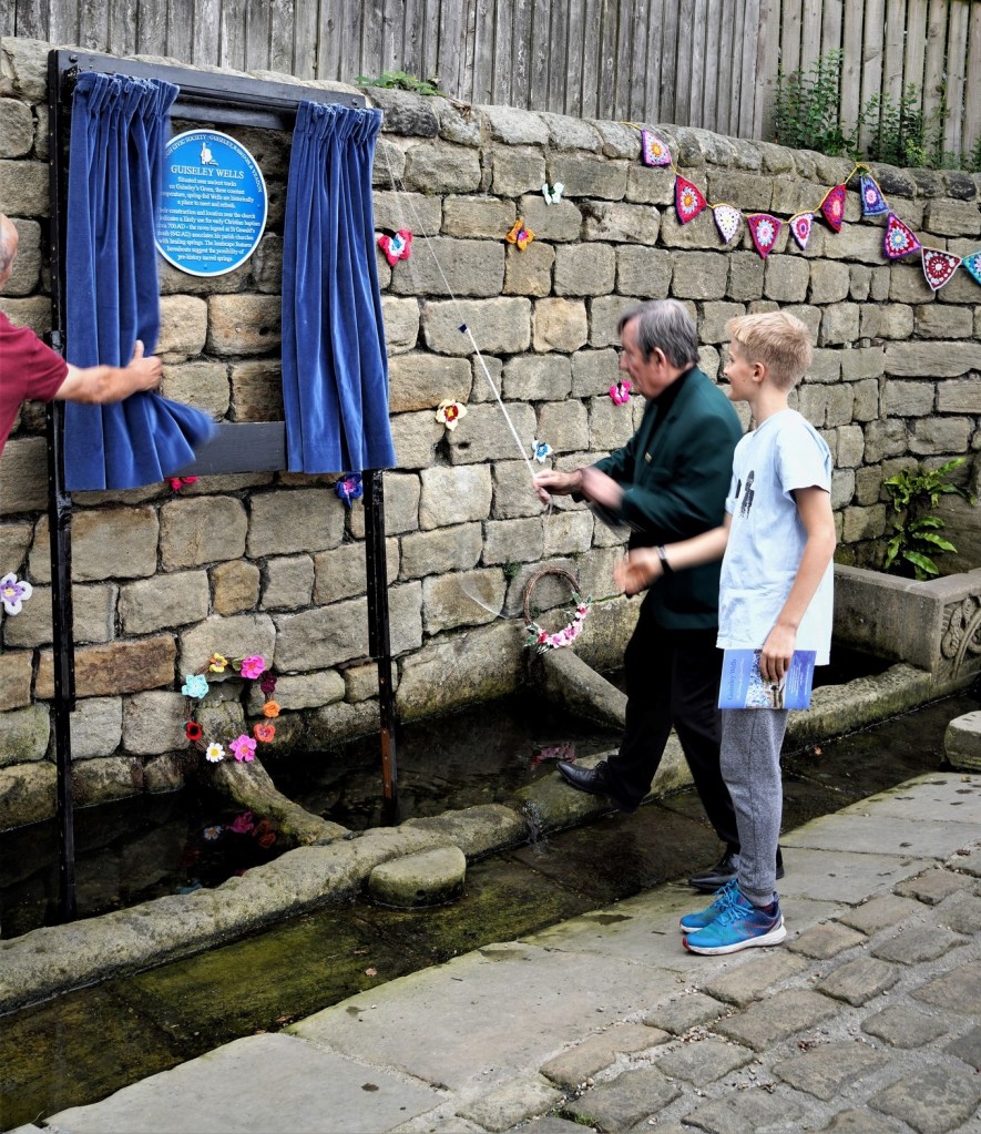The sun shone on the afternoon of Sunday 11th September, when residents of Guiseley gathered to see a new Blue Plaque was unveiled at the historic Guiseley Wells, as part of Heritage Open Days 2022.